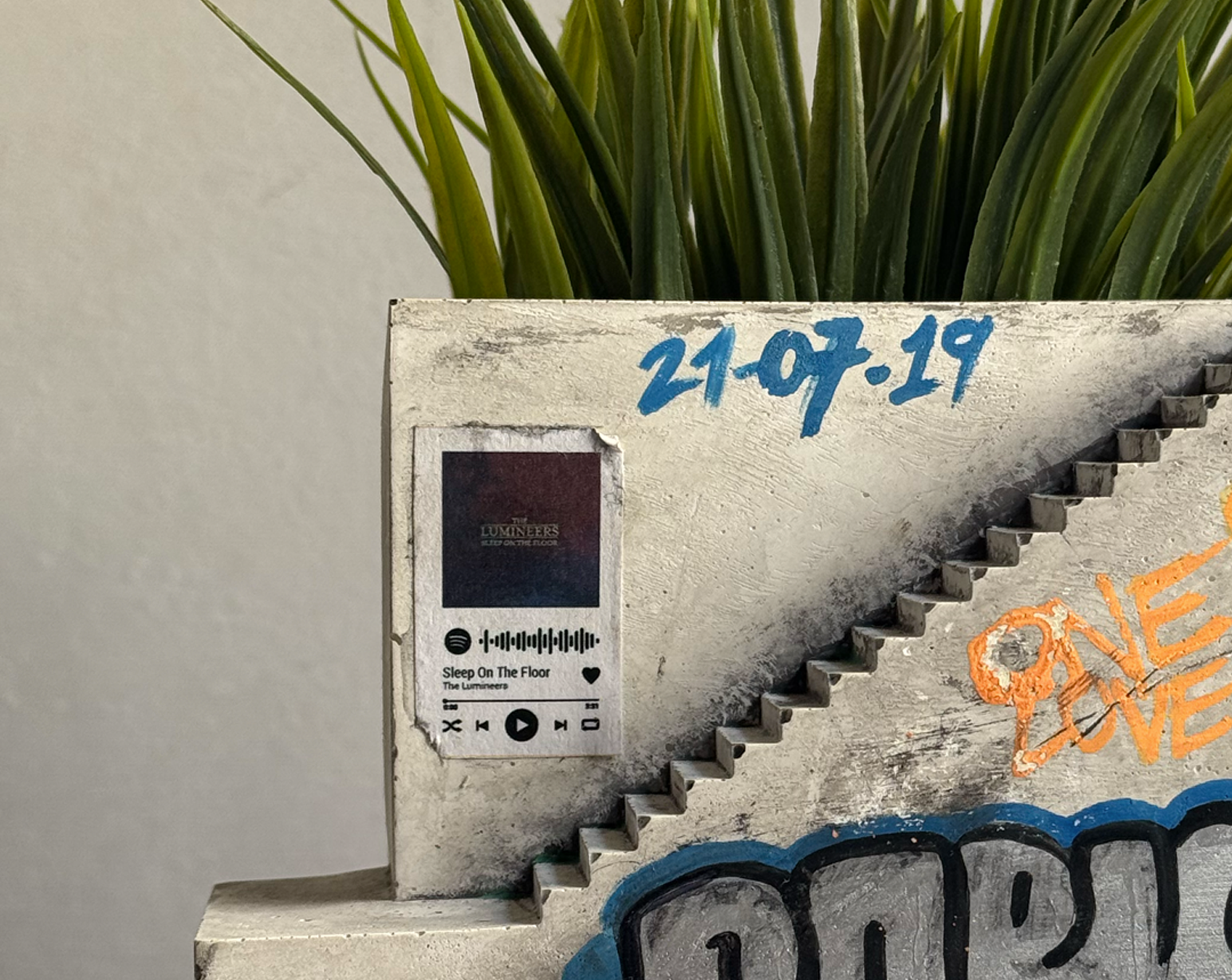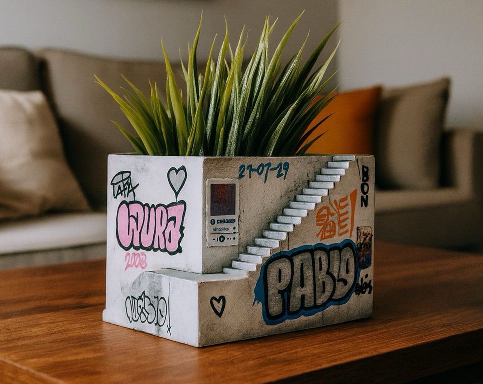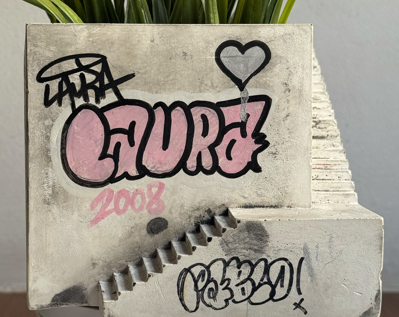 Cada maceta está hecha a mano y pintada con graffiti personalizado: nombre, frase o diseño.
